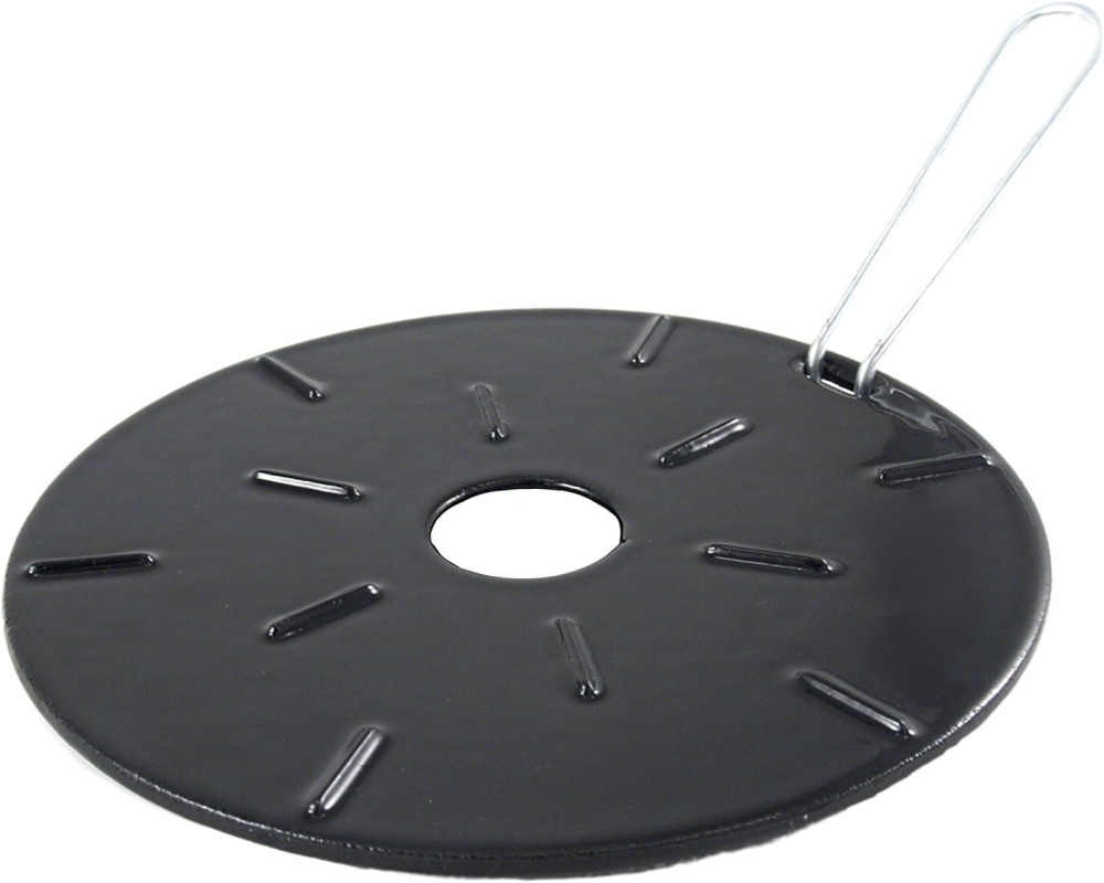 Этот чугунный эмалированный предмет с ручкой имеет диаметр 210 мм и предназначен для плиты. Он равномерно распределяет тепло по всей поверхности посуды, позволяя блюдам готовиться быстрее и равномернее. Кроме того, использование такой пластины поможет сэкономить газ или электроэнергию.