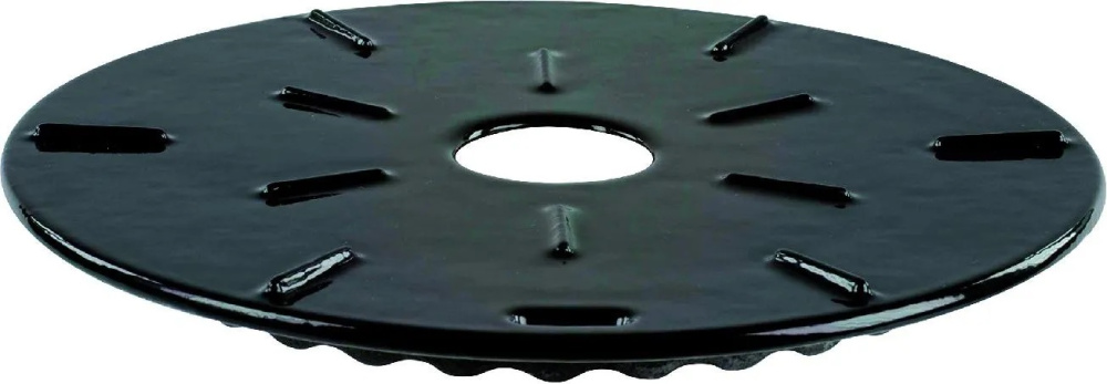 Излучающая пластина, расположенная между источником тепла и кастрюлей, способствует равномерному приготовлению пищи, которая не пригорает. Благодаря своим собственным свойствам чугун сохраняет и равномерно распределяет тепло, позволяет избежать перемешивания продуктов во время приготовления, а также предотвращает внешнее почернение посуды, вызванное пламенем. Тарелка подходит для всех типов сковород, особенно без блестящего дна и терракотовых.