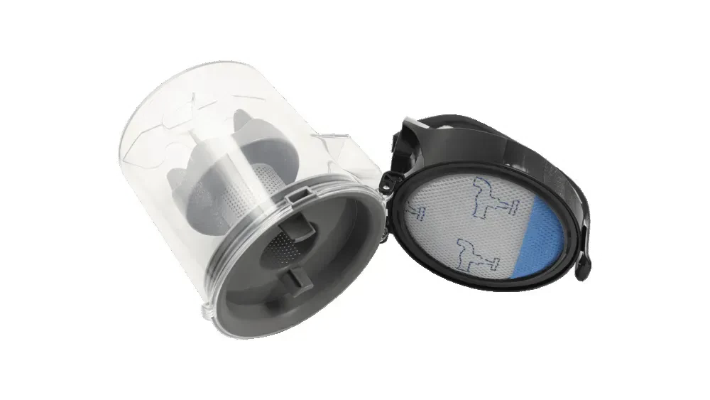 Этот контейнер оснащен качественным фильтром, который эффективно задерживает пыль и мелкие мусорные частицы, делая уборку более эффективной и гигиеничной.